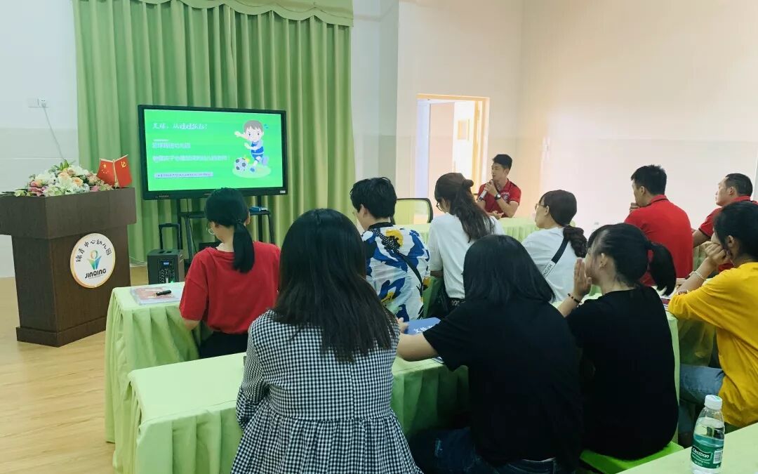 为了进一步充分发掘足球特色在幼儿中所展现的独特魅力和综合教育功能,构建学园足球文化,深入推进我园足球课题的开展。2019年10月25日下午,我园荣幸邀请到《福建省幼儿园学前阶段足球课程设计》编制课题组调研员陈杰老师莅临我园开展《足球踢进幼儿园》教师足球技能专题培训,本次活动邀请片区园的老师来园聆听。