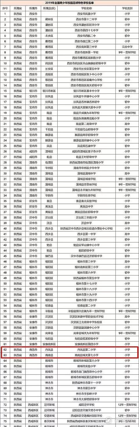 其中,丹凤县第二小学、商南县城关第七小学入选全国青少年校园足球特色学校名单。