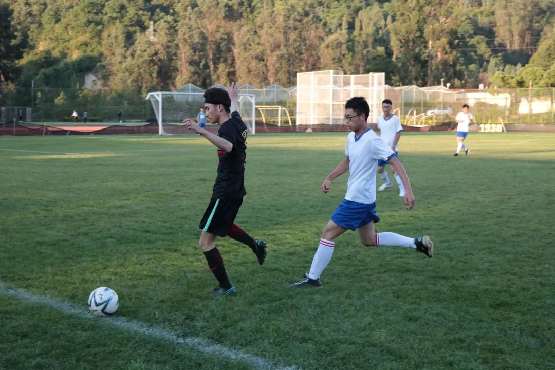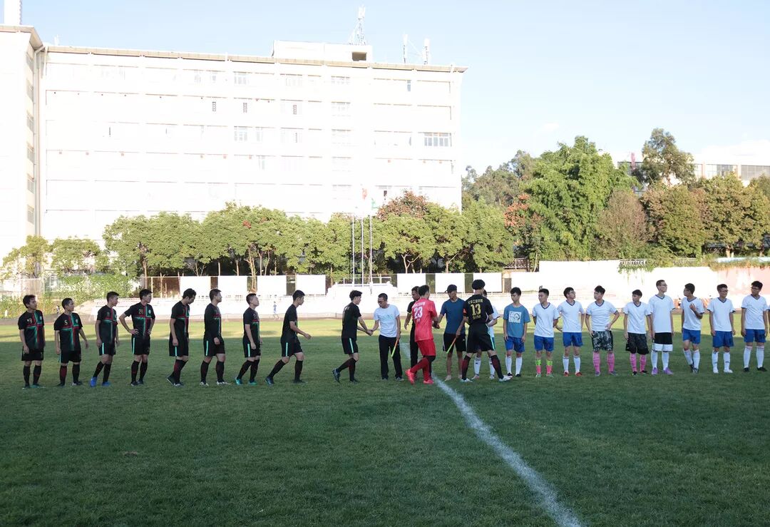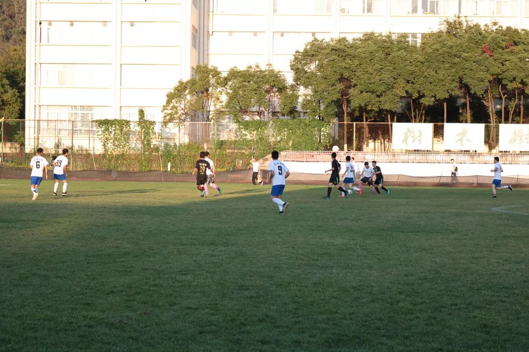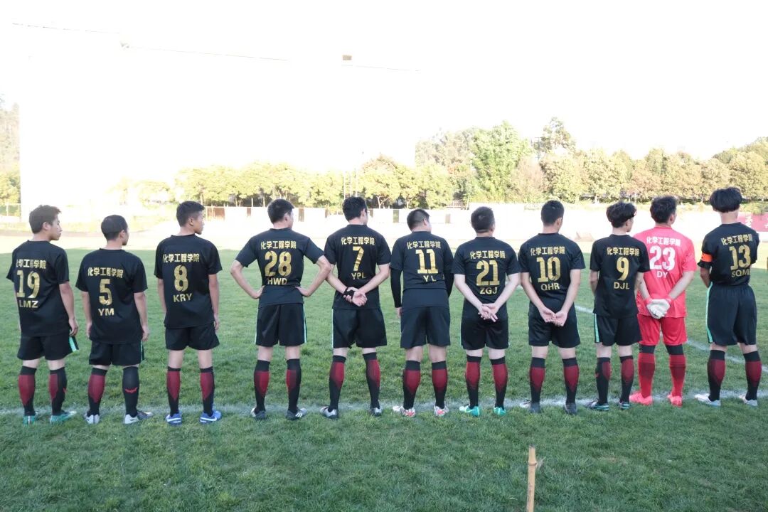 比赛的双方分别是穿黑色队服的化学工程学院队和穿白色队服的数理学院队。