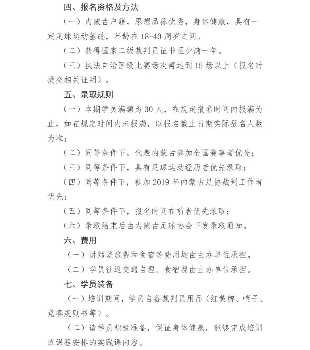 内蒙古足球协会关于举办国家二级足球裁判员培训班的通知