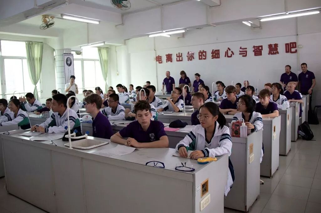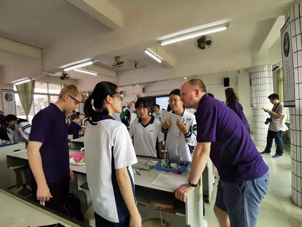 安卡利亚俱乐部代表团参加了一节气氛活跃的化学实验课,体验了二中独特的“导—学—展—评—延”五步教学范式。邹志龙老师精彩幽默的发言、深入浅出的解说和细致得当的示范,引得英国学生和二中学子连连叫好。实验过程中,学生们的热烈讨论、勇敢尝试、合作探究令整节课精彩迭出。科学有趣的实验吸引着陪同的教练和老师们也忍不住参与进来。