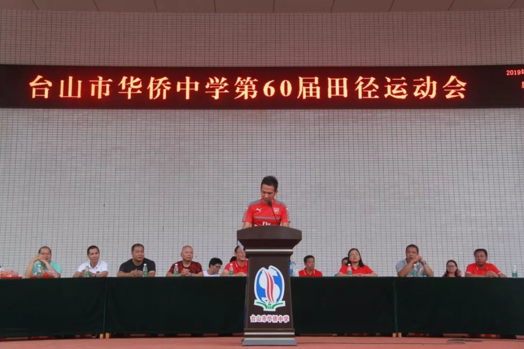 大会组委会副主任陈成东副校长宣布台山市华侨中学第60届田径运动会闭幕