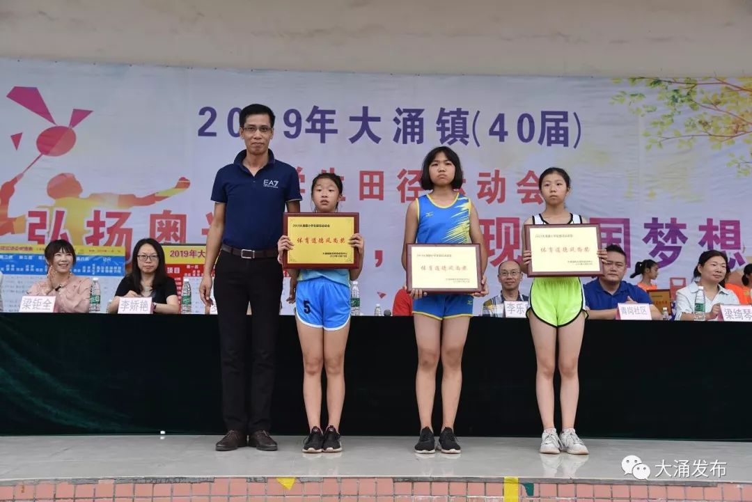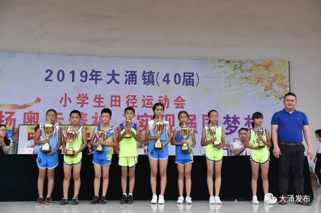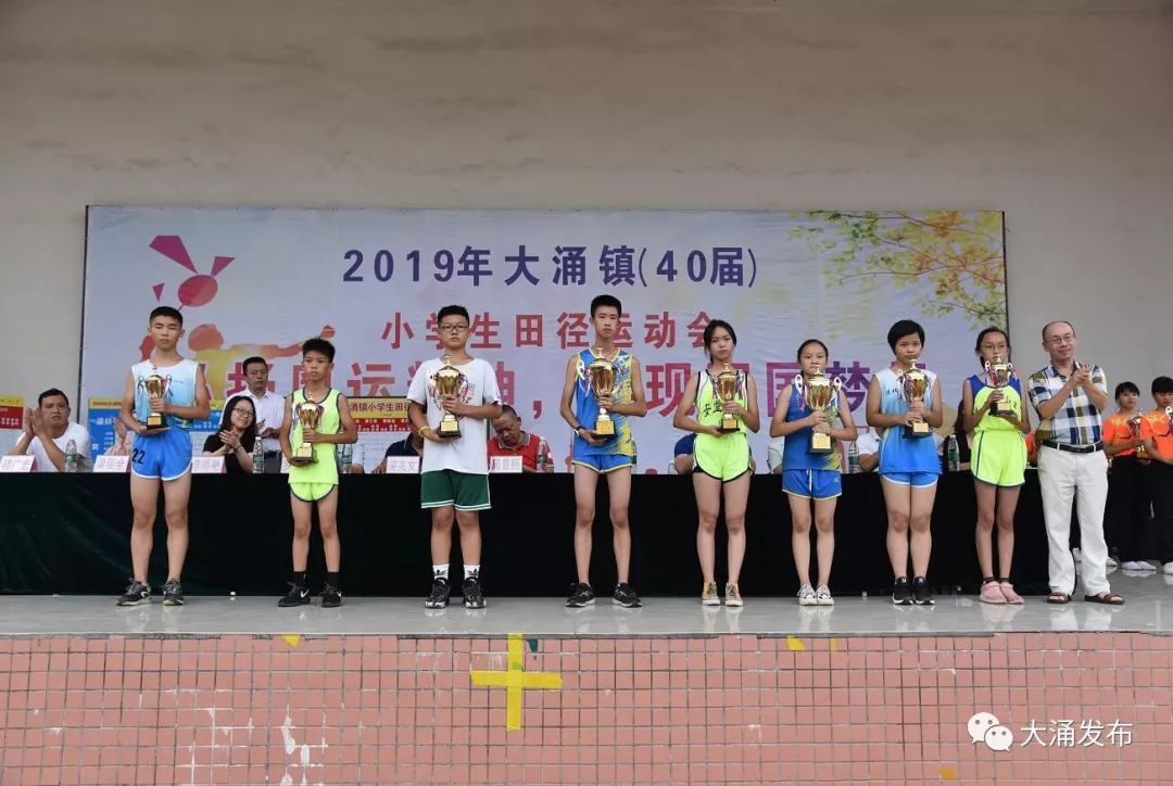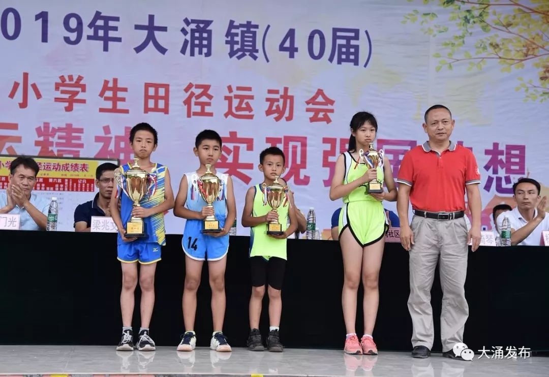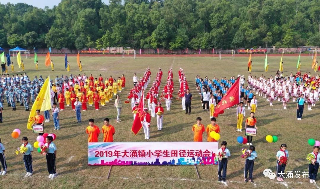 大涌镇2019年小学生田径运动会上,全镇各小学的132名运动健儿代表进行了短跑、长跑、跳高、跳远、垒球、接力等38个运动项目,竞逐228个奖项。