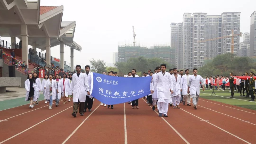 10月25日上午,我校2019年田径运动会暨首届体育文化节开幕式在临桂校区运动场举行。院长张志勇、党委副书记齐俊斌、副院长辛懋出席开幕式。各二级学院负责人及运动会组委会全体成员参加开幕式。