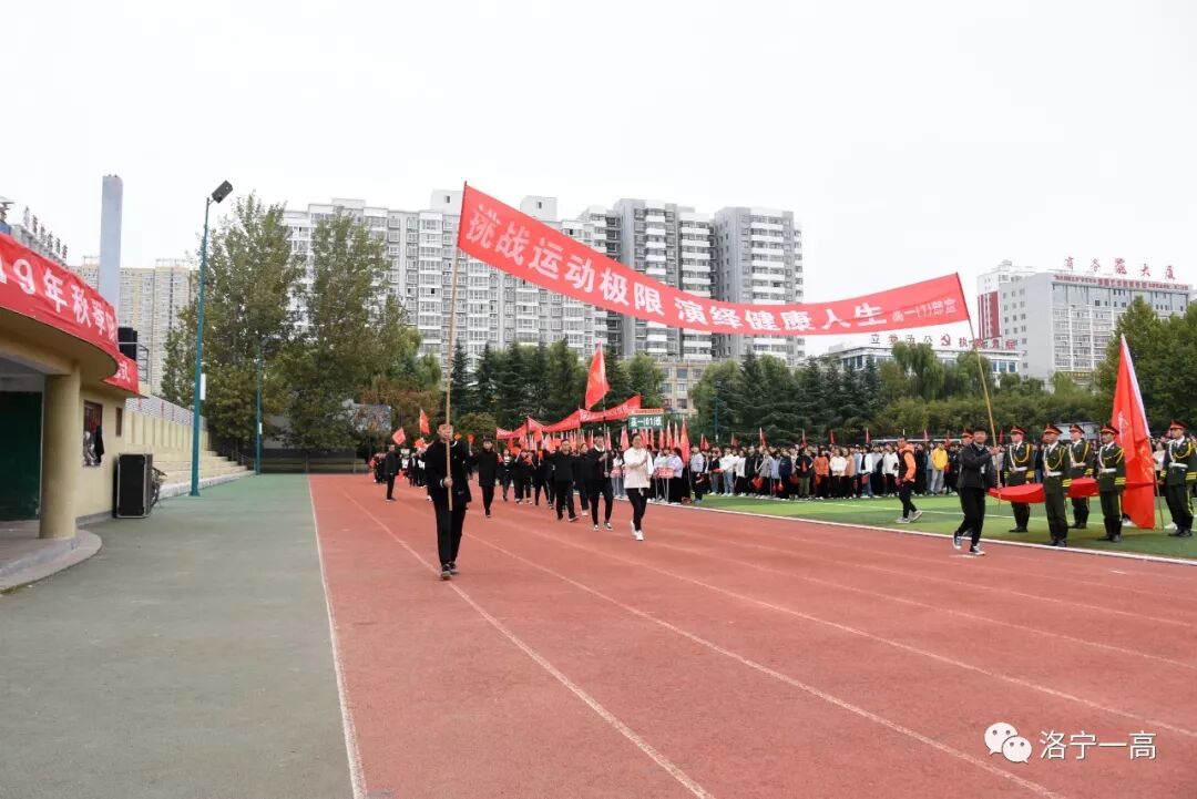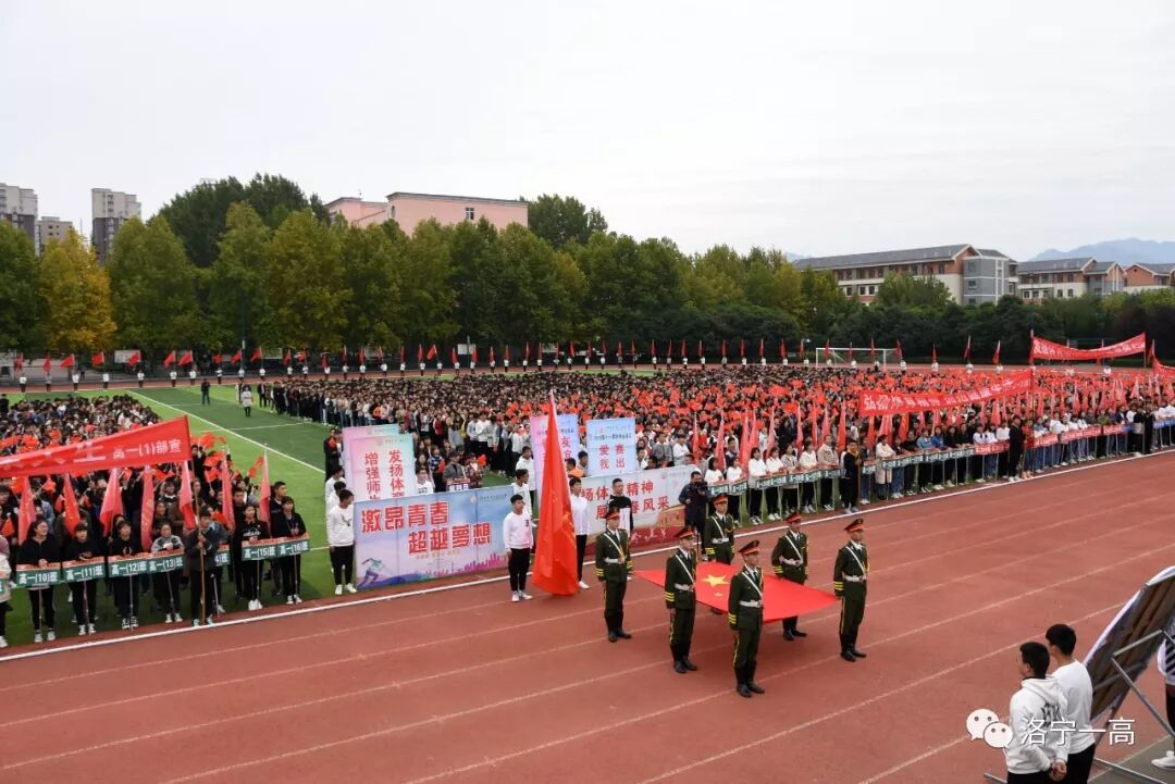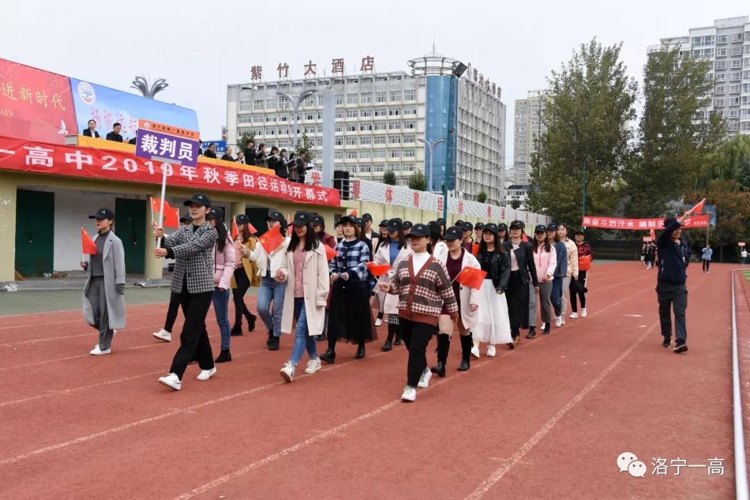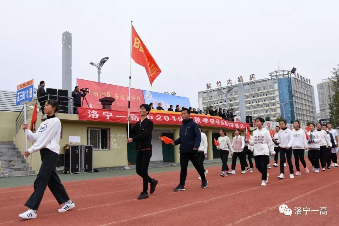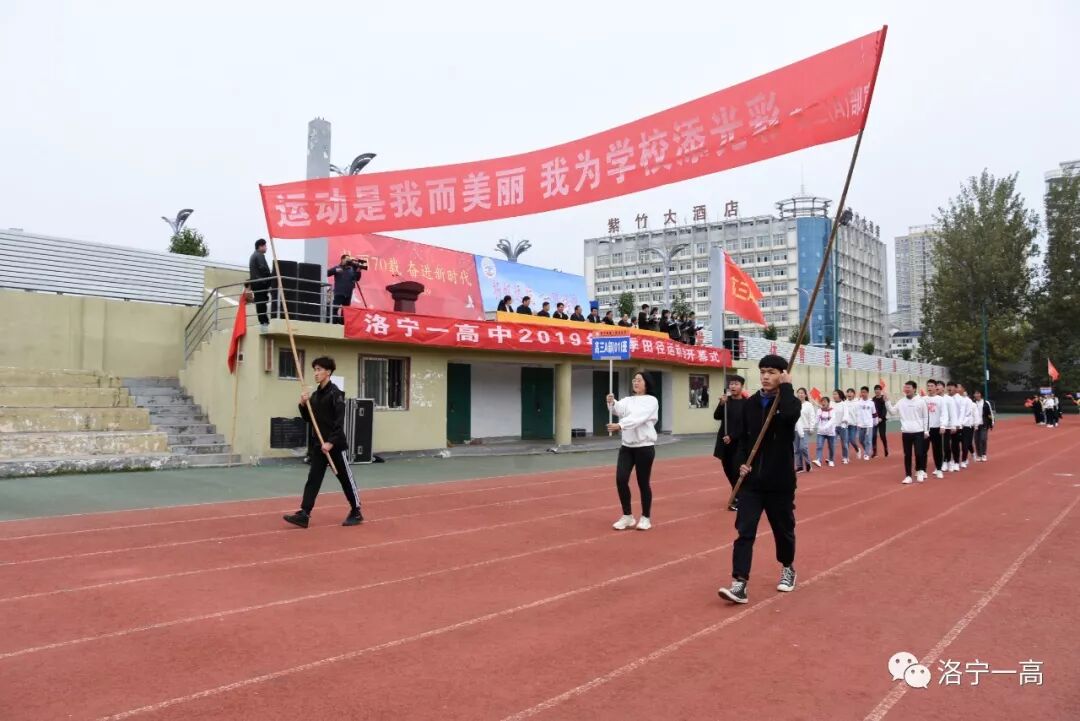 青春点燃梦想,体育铸就辉煌。2019年洛宁一高中第十一届秋季田径运动会于10月25日上午正式吹响号角。洛宁一高中校长于元伟,副校长王鑫、卫红新、王蒙、许运涛等领导及全体师生参加,开幕式由王晓武同志主持。