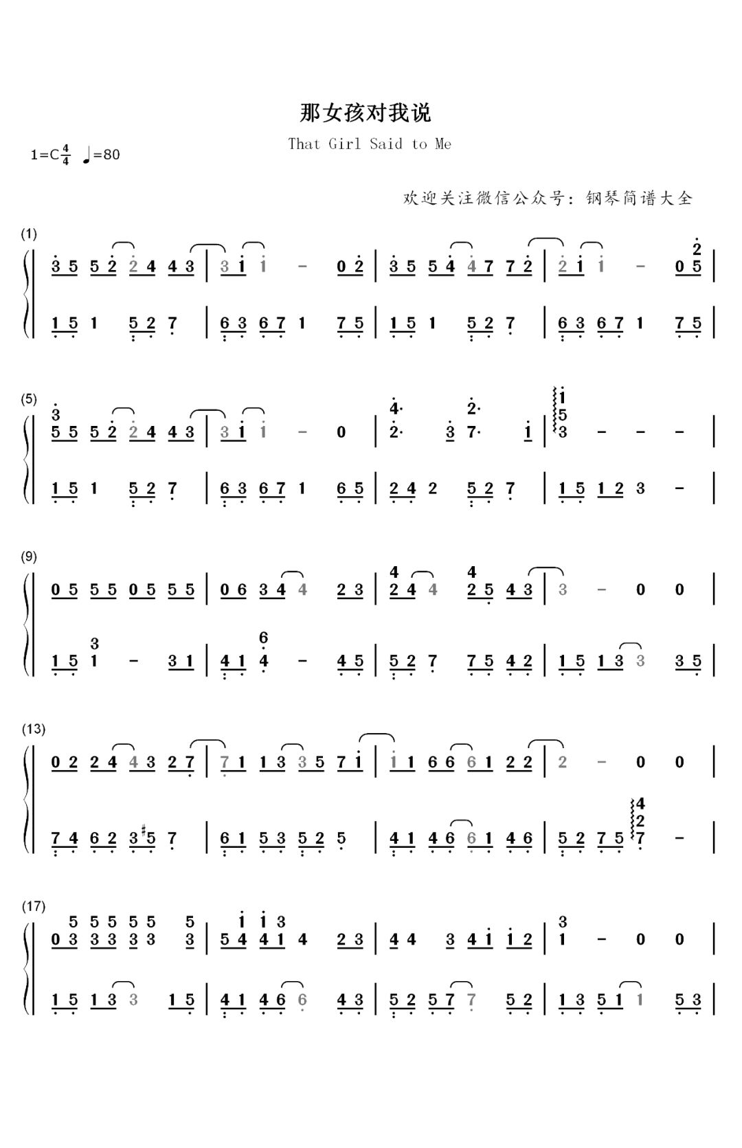 钢琴简谱||《那女孩对我说》虐心失恋-黄义达