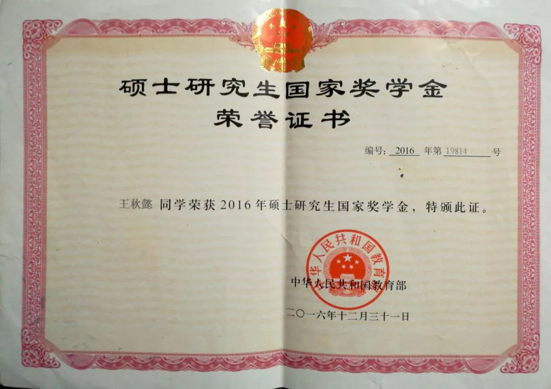 她品学兼优,本科和研究生毕业时都被评为省级优秀毕业生,还被评为山东高校十大优秀学生和“大智之星”齐鲁学子奖学金榜样奖,并光荣地加入中国共产党。