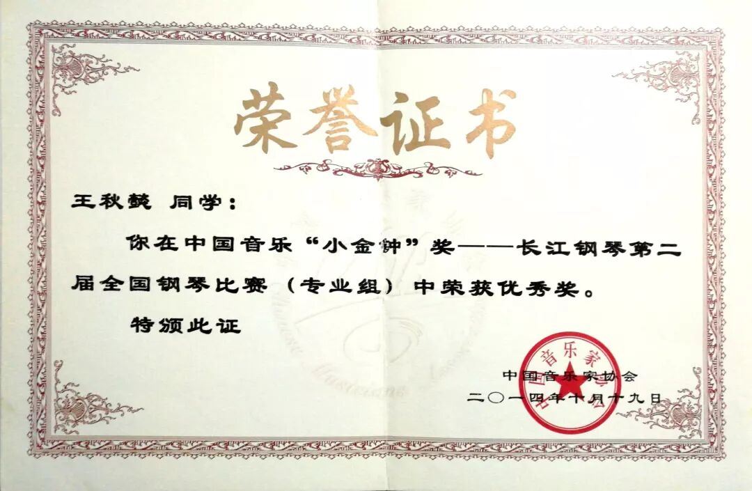 其中,她获得的中国音乐“小金钟”奖——长江钢琴第三届全国钢琴比赛中(高校组)银奖,是山艺钢琴专业学生所获得的最好成绩,7年中获各类大赛奖励钢琴3架。