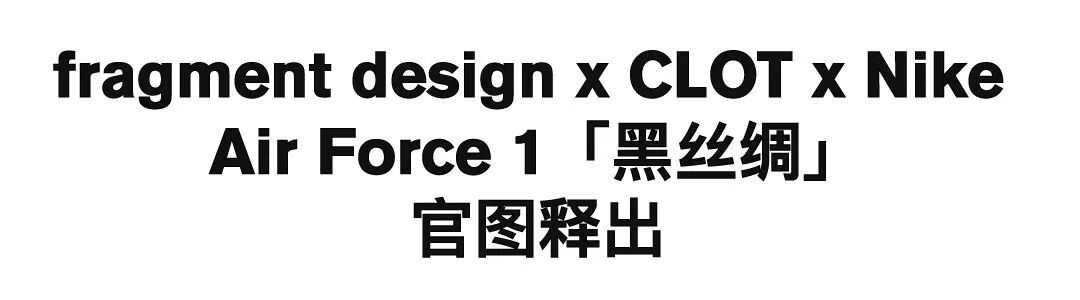 有没有感觉最近自己的「球鞋生涯」正在被 CLOT 与 Nike 联手打造的「丝绸系列」所主宰呢?从即将二度发售的 CLOT x Nike Air Force 1「蓝丝绸」到定档 12 月的 CLOT x Air Jordan 1 Mid「Fearless」白丝绸,而今此前酝酿已久的 fragment design x CLOT x Nike Air Force 1 三方联名鞋款亦释出了一系列官方图片预览。该鞋款作为 CLOT x Nike「丝绸之路」的下一站,以纯黑色丝绸材质贯穿鞋身,延续传统中国结/龙纹印花标配,并搭配生胶色大底设计呈现。此外,该款「黑丝绸」更得到日本里原宿潮流教父的加持,丝绸携手「双闪电」,似乎已找不出错过这双 fragment design x CLOT x Nike Air Force 1 的理由。截至目前,该鞋款尚无具体发售信息曝光,敬请期待。