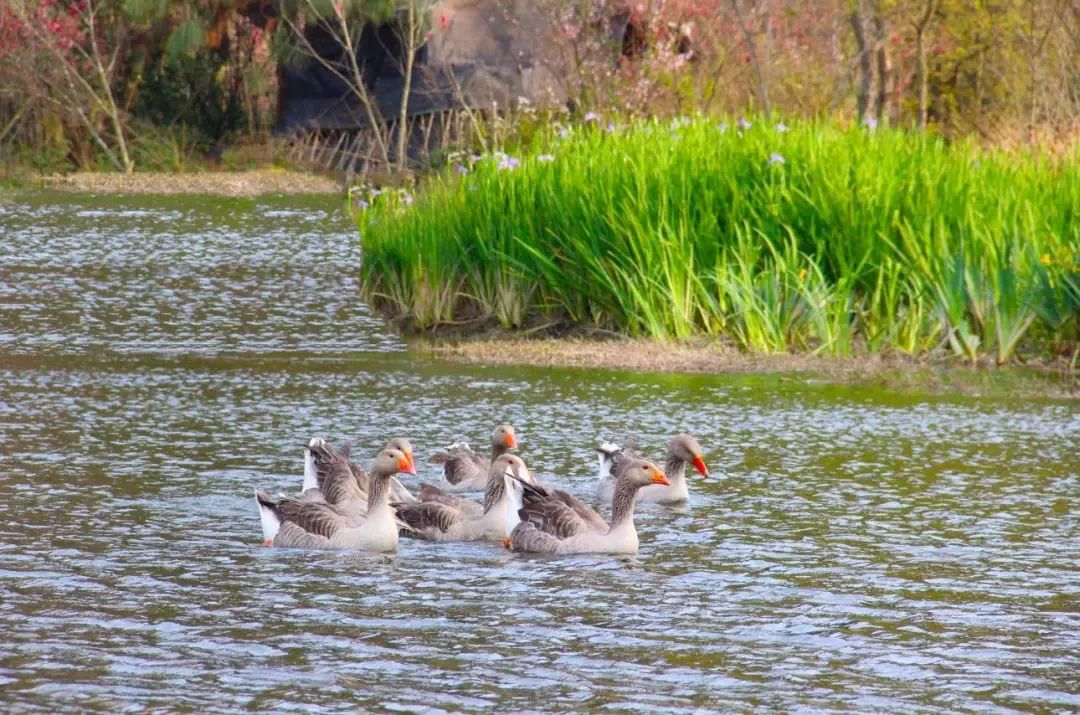 在玉龙湾的水道上,四周绿树成荫,天鹅野鸭不时从身旁游过,滑累了找个平地歇息一下,或者直接躺在皮划艇上,任由水波荡漾这小船。