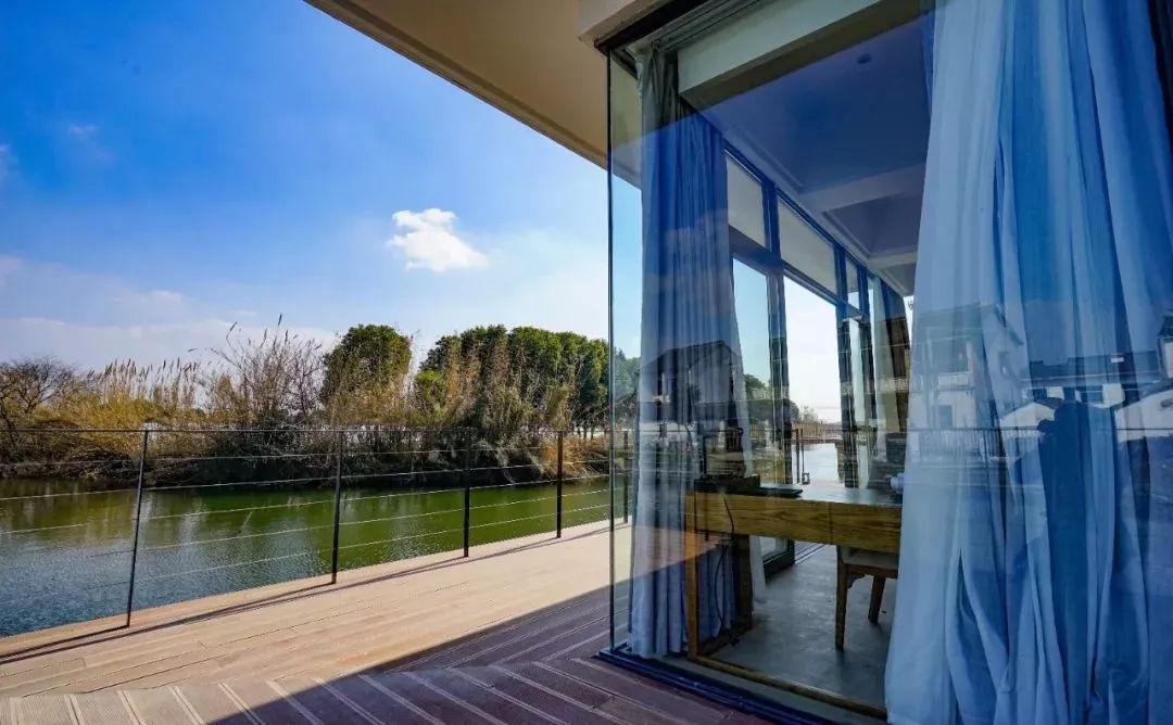 几乎每间房都配置了视线无遮挡的阳台,二楼的可以远眺错落有致的苏式人家,看风后摇曳的樟树林,还可以看到金黄的麦田。想要深入这河道星罗密布的小镇中,不如划一艘小船去串门。