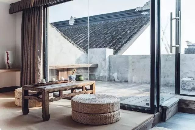 村上湖舍的14间客房都坐北朝南,临水而建。躺在床上就能看到船夫悠然地划桨而过,江南的水草丰美和悠然氛围都如画卷般在眼前铺陈。