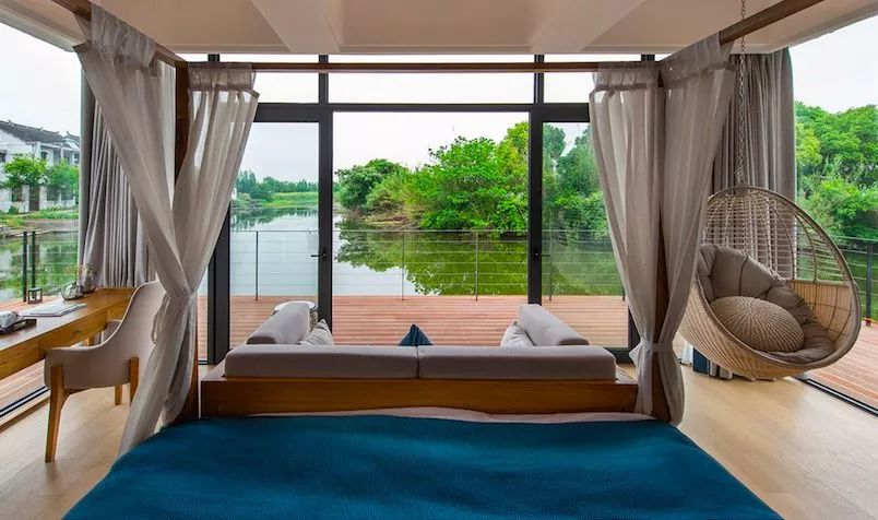 |三面临水的落地玻璃窗,拥有270度无敌视野的水景房