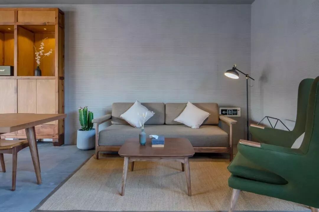 大乐之野锦溪由四栋楼组成,共有24间客房,走入每一栋,都像是一个独立的门户。每一栋都有着自己的客厅和小厨房。