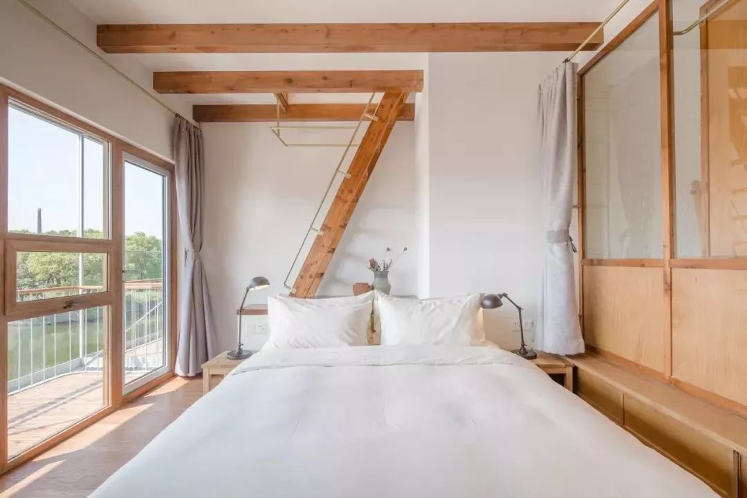 在清舍,不管以怎样的姿势,怎样的角度,都是一种切切实实睡进了江南水乡的真实感。室内以原木设计为主,简约时尚,且配备有Nespresso胶囊咖啡机、蓝牙音响和全自动窗帘。