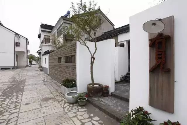 右见十八舍就座落在这姑苏城外,紧邻水草丰美的太湖水域。右见十八舍不算好找,柳舍村连绵着的白墙黛瓦的民居,似迷宫般绕着河流聚集在一起,得绕过两座小桥,穿过小巷道才能看见十八舍得标记。