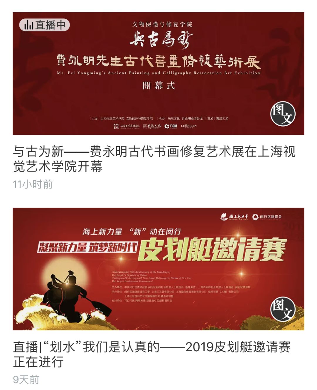 “妙造自然——费永明扬帮古书画修复展”、“奋进40年?携手再出发 皮划艇邀请赛”、“光影岁月?美好闵行——闵行区改革开放 40 周年视觉影像展”、“妍妙辉光——费永明纸质文物修复与古笺再造艺术展”、“凝聚新力量 筑梦新时代”庆祝新中国成立70周年皮划艇邀请赛等十余场品牌活动的生动直播,全面展现了闵行新阶层人士的奋斗热情和精神风貌,反响热烈。