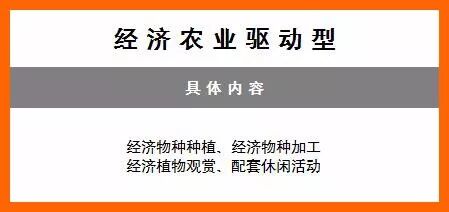 经济农业驱动型以大面积种植经济植物或经济林为主,形成经济农业种植,加工、储存、物流为一体的经济农业驱动区,同时可满足人们观光、现场购买、休闲等旅游功能,并推动相关服务业态的形成,从而实现多种业态并行。