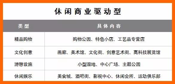 休闲商业驱动型指能够为“有钱有闲”的人群提供融旅游、购物、休闲于一体的产品,从而获得身体和精神双重愉悦的消费业态聚集地。
