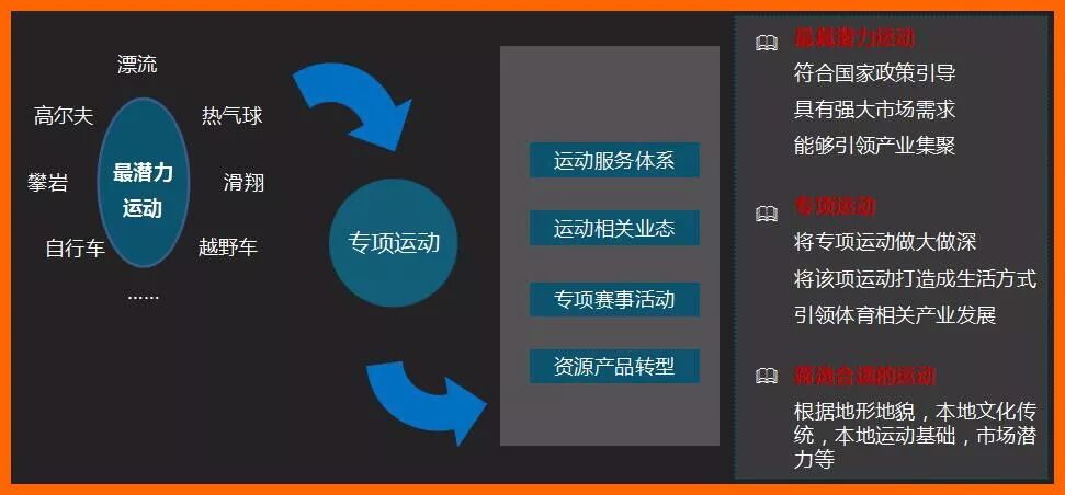 依托特殊的自然条件和国家的政策支持,打造运动基地,通过各种赛事、体育主题活动、体育夏令营、体育会议会展等形式,引领产业转型升级,从而推动体育产业发展。具体包括综合运动驱动型、专项运动驱动型、训练基地驱动型。