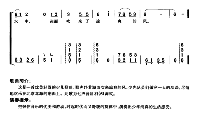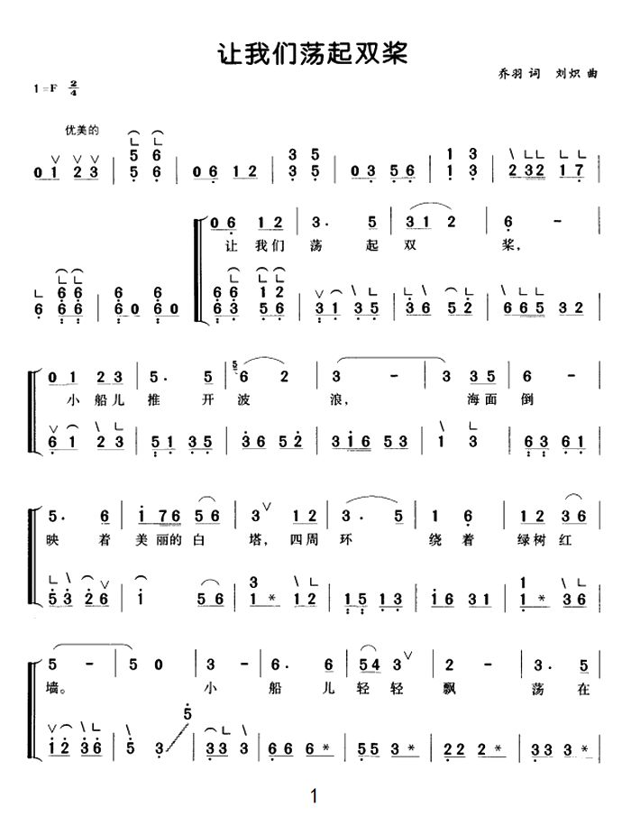 《让我们荡起双桨》是乔羽先生作词,刘炽先生作曲,刘惠芳演唱的歌曲。该曲是1955年拍摄的少儿电影《祖国的花朵》的主题曲。