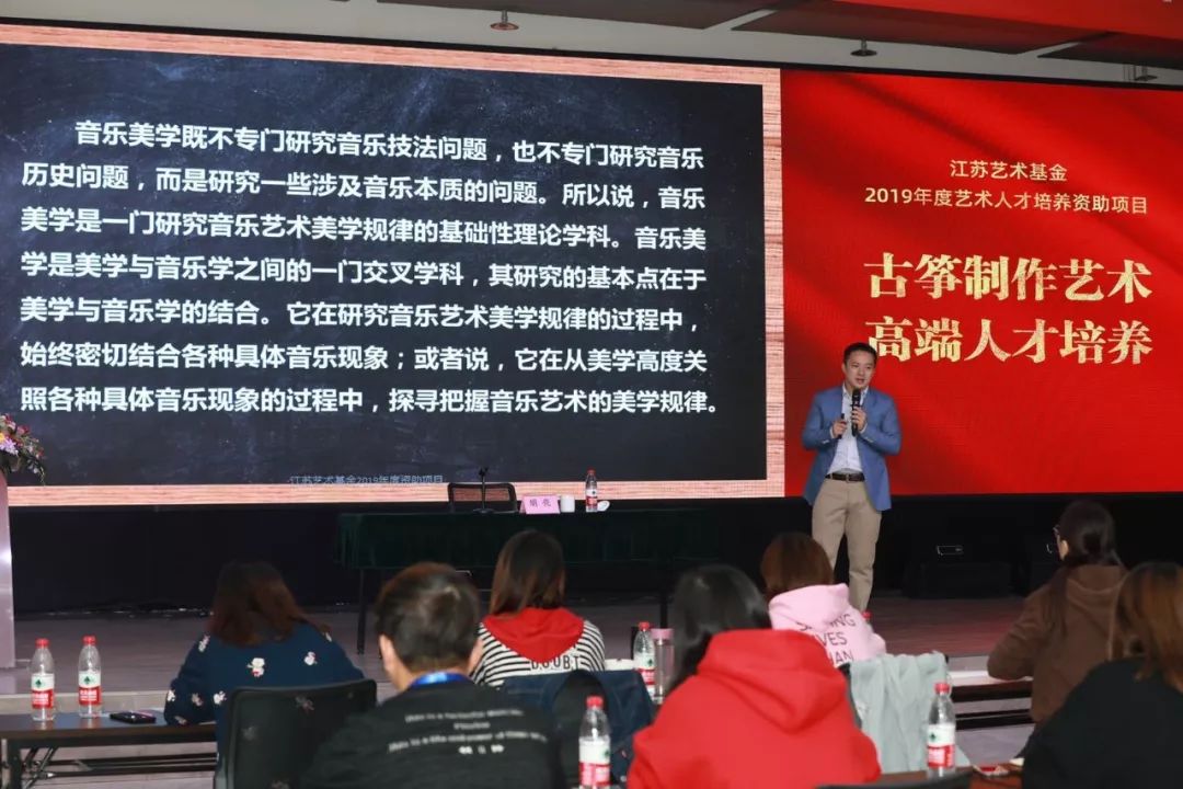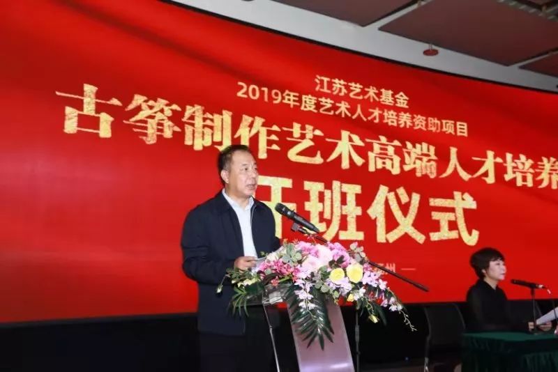 2019年10月21日上午,由扬州大学音乐学院承办的江苏艺术基金2019年度艺术人才培养资助项目《古筝制作艺术高端人才培养》开班仪式如期举行。校人文社科处处长佘远富、音乐学院党委书记李向阳、音乐学院副院长胡亮出席了开班仪式。佘远富处长发表讲话。项目负责人、音乐学院副教授王小平主持开班仪式。