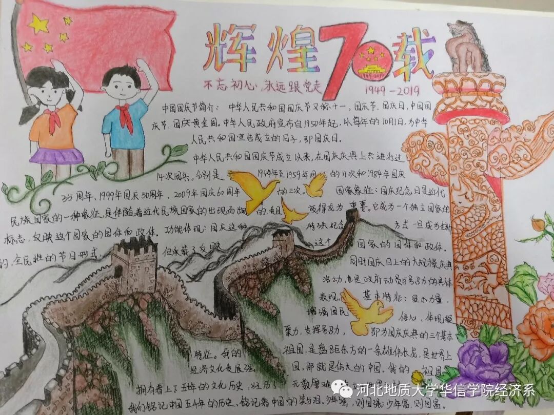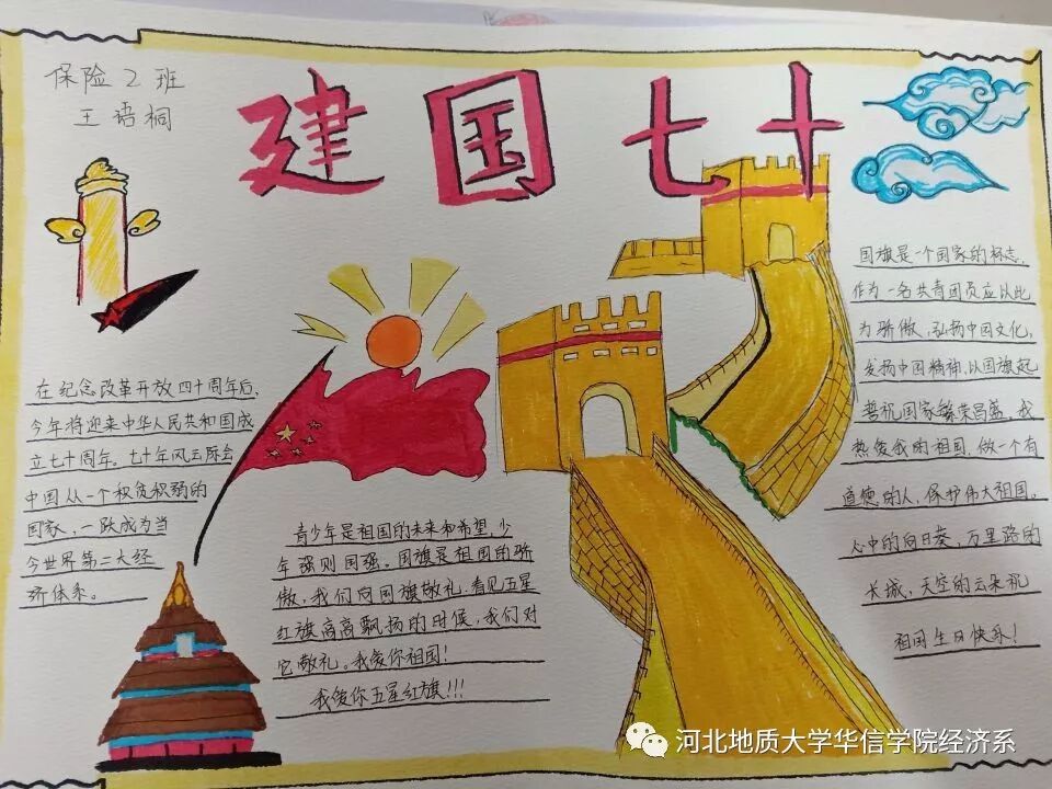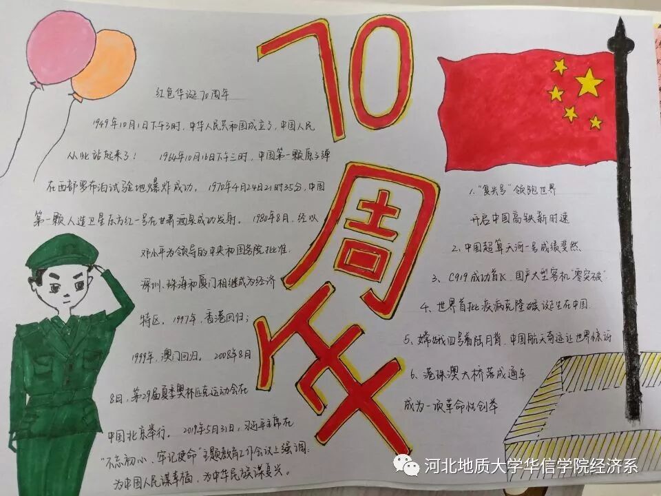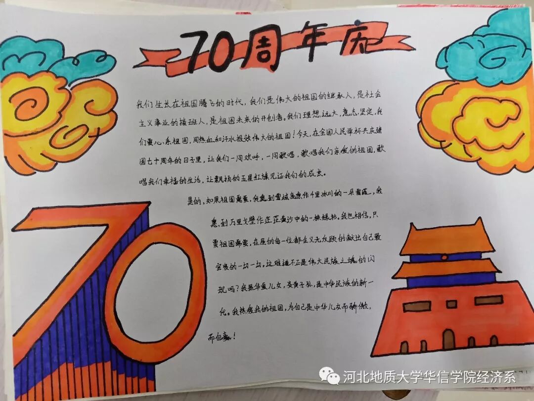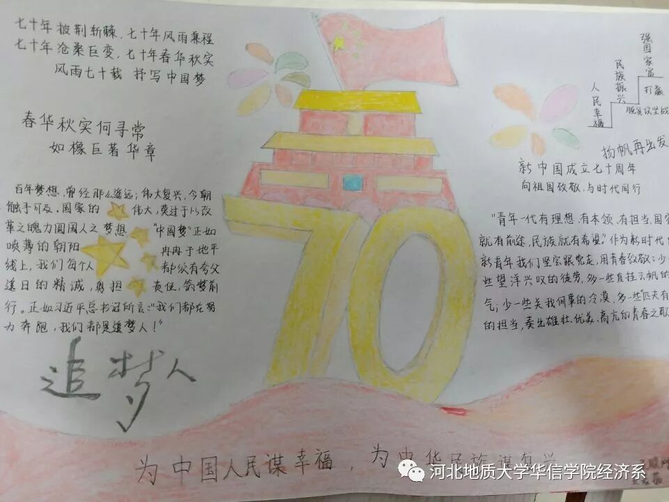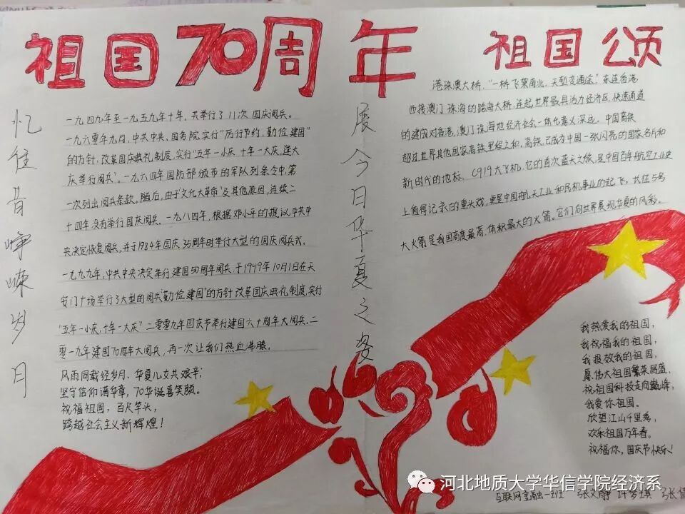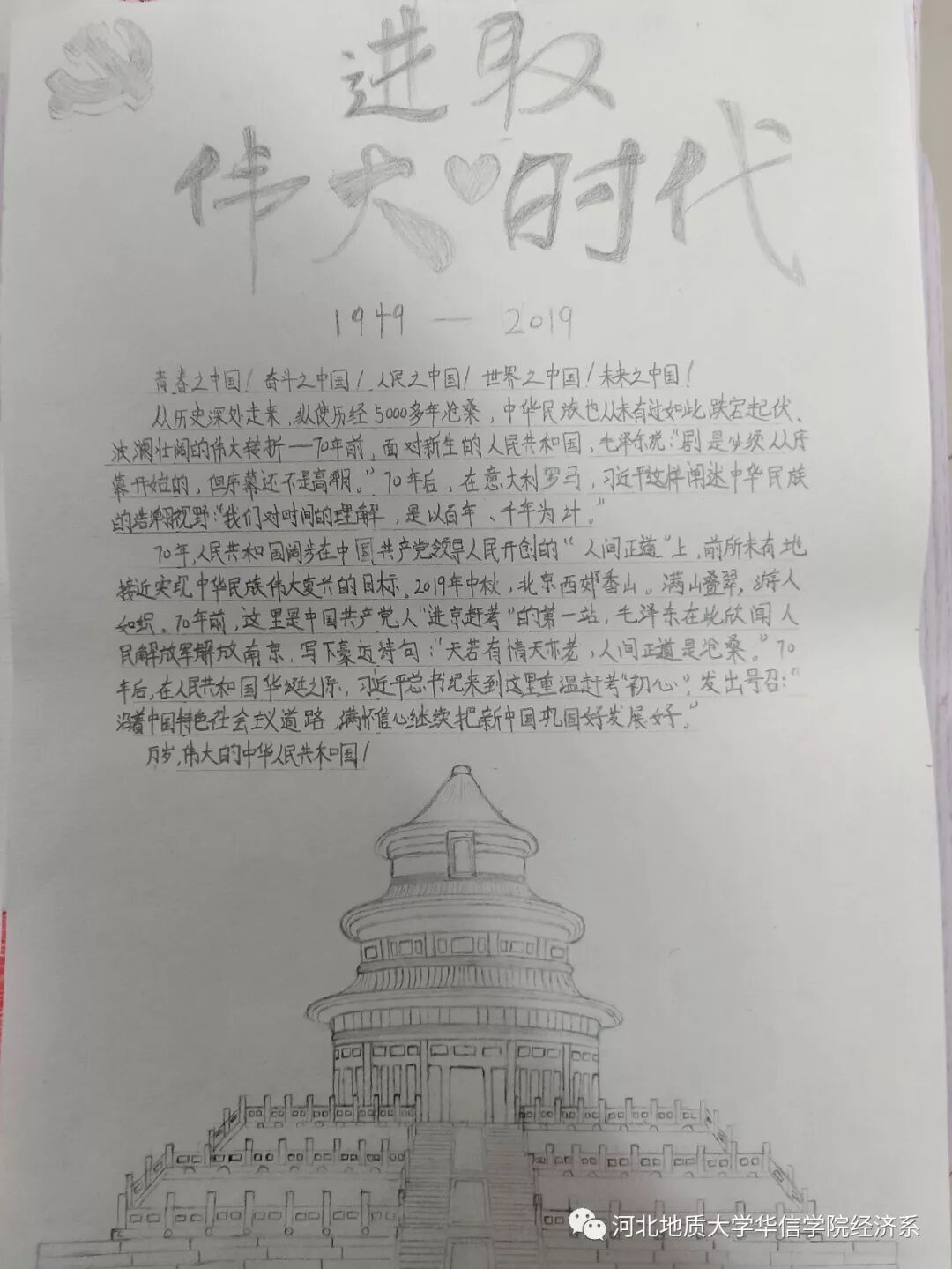 为了提升学生们的文化素养,培养同学们动手、动脑能力,同时庆祝我国建立70周年纪念日。经济系学生会新媒体中心特地举办书法手抄报比赛,借此来激发学生们的爱国情怀及创新能力。