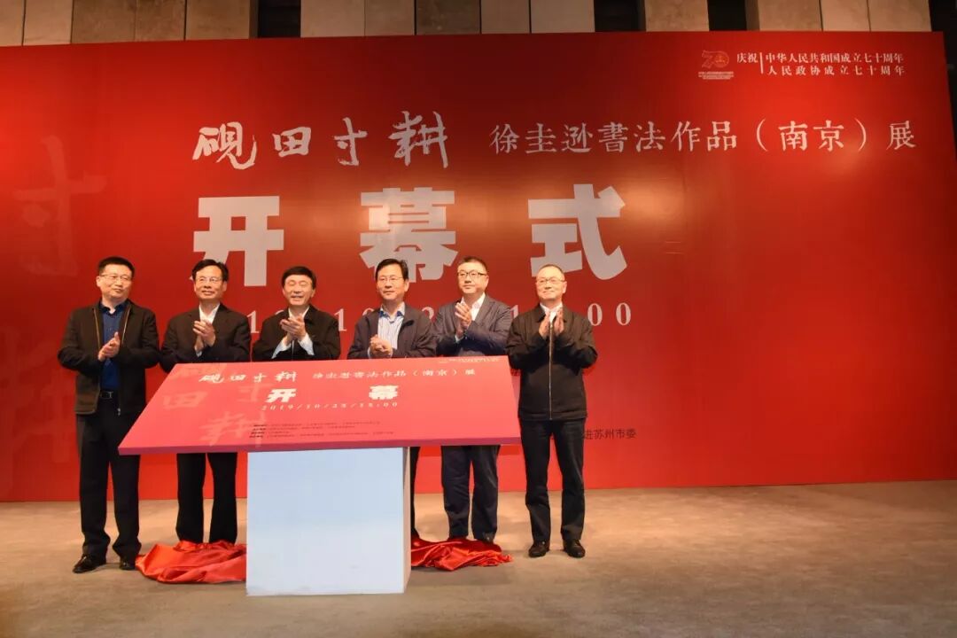 2019 年10 月25 日下午三点,为庆祝新中国成立70 周年、人民政协成立70 周年,由中共江苏省委宣传部、江苏省文化和旅游厅、江苏省文学艺术界联合会为指导单位,民进中央开明画院、民进江苏省委、江苏省书法家协会联合主办,江苏省美术馆承办的“砚田寸耕”徐圭逊书法作品(南京)展在江苏省美术馆新馆一楼大厅隆重开幕!
