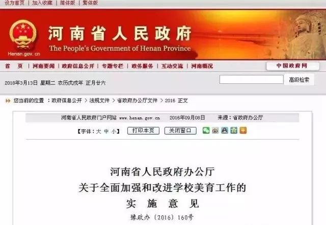 河南省人民政府办公厅就出台了《关于全面加强和改进学校美育工作的实施意见》《意见》里说,要逐步扩大中招艺术考试试点范围,建立完善全省中招艺术考试制度。