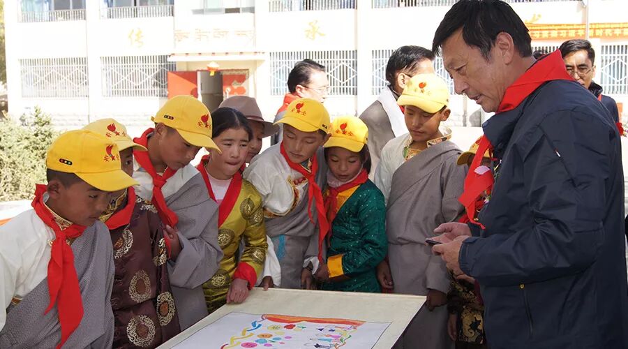 揭牌仪式后,羊达中心小学学生代表引领各位领导及嘉宾,参观了学校师生代表的作品展。展出的作品中包括藏汉书法、素描、水彩(粉)画、手工作品等,这些作品题材广泛、内容丰富、风格各异、形式多样、内涵深刻,彰显出师生的美术素养和扎实的艺术功底,也体现了创作者对家乡、祖国及美好生活的赞美和热爱。观展的过程中,领导及嘉宾热情高涨,充分肯定了师生的作品,并与优秀作品合影留念,同时也指出要更好地营造出健康活泼、喜庆热烈的气氛,为书香校园的建设书写浓墨重彩的一笔,让师生汲取传统艺术精华,更好地传承和弘扬中华传统文化。