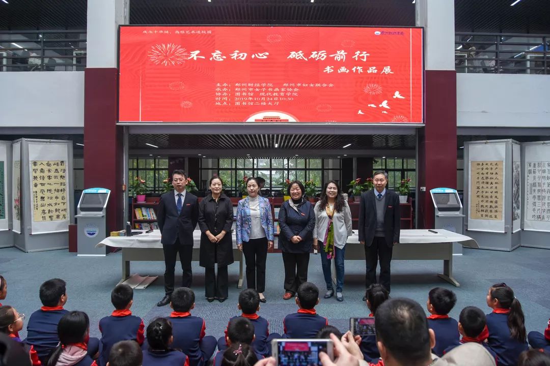 本次活动由我校与郑州市妇女联合会主办,郑州市女子书画家协会承办,我校图书馆和现代教育学院协办。郑州市人大常委、教科文卫委员、郑州市女子书画家协会主席毛鸿雁,郑州市妇联副主席刘翠柳,惠济区教体局副局长王新芳,双桥小学副校长陈楠,郑州市女子书画家协会副主席李晓燕、孔艳彩、王莉婷、李蕙敏、孔英、陈婕等女子书画家,我校校长于向英,图书馆馆长刘广普,现代教育学院副院长郑琳娜,以及来自双桥小学和郑州财经学院的部分师生代表参会。开幕式由现代教育学院党总支书记丁青山主持。