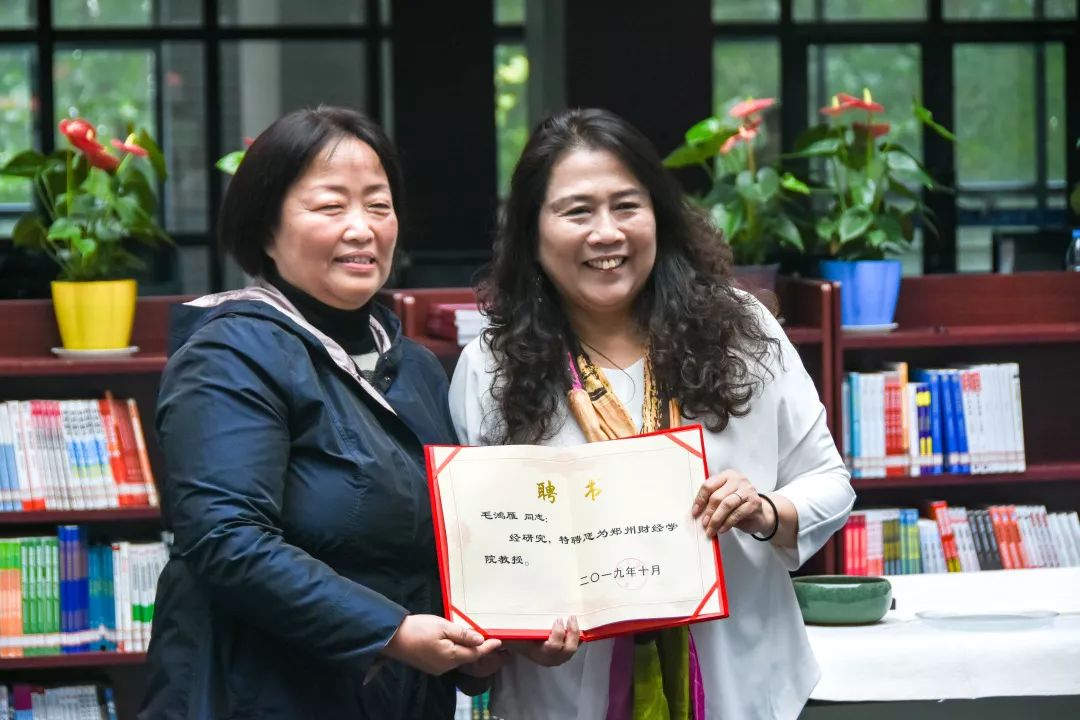 现场,于向英向毛鸿雁教授颁发了我校特聘教授聘书,并表示学校将建设书画工作室,为热爱书画的师生与书画家搭建文化交流平台。