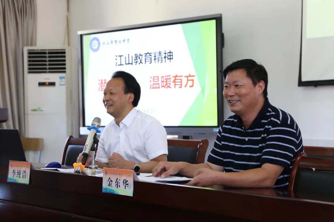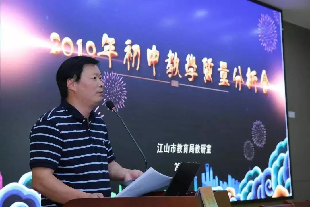在江山市教育质量分析会上,我校金东华校长作为全市教育质量先进学校做典型发言。