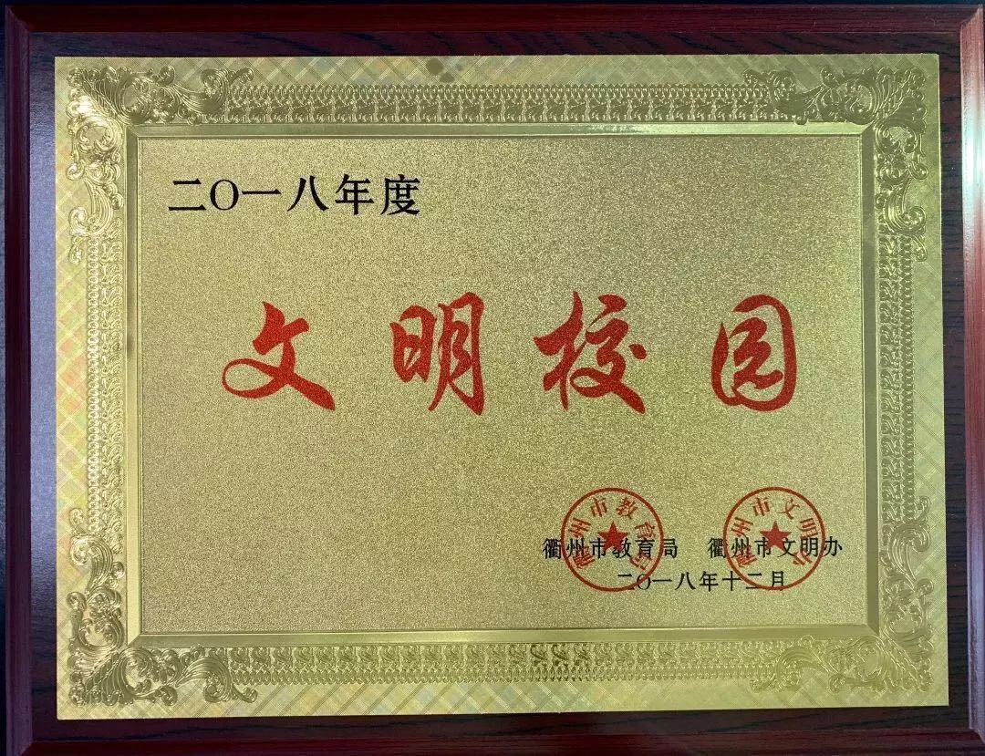 2019年贺村一中被评选为全国教育系统先进集体,是衢州地区中小学义务教育阶段唯一获此殊荣的学校。