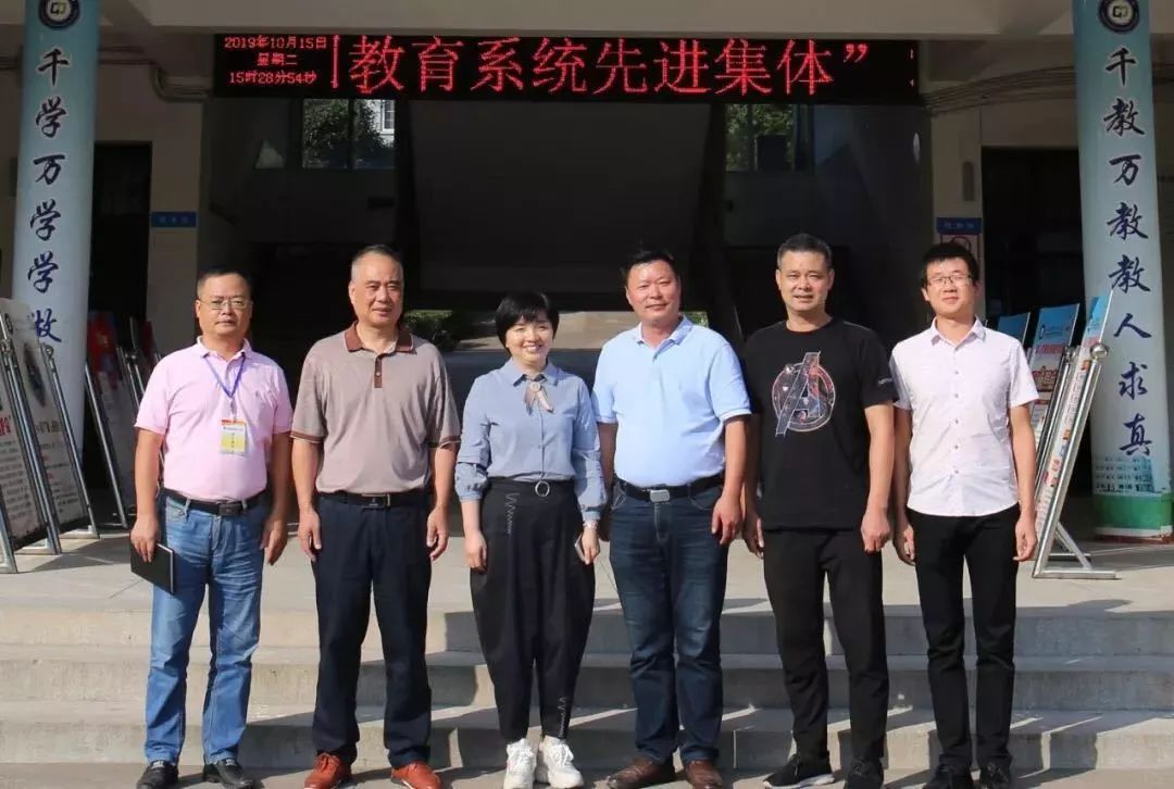 10月15日,市教育局党委书记、局长毛香水携办公室负责人等一行来到贺村一中,对学校今年荣获“全国教育系统先进集体”表示热烈祝贺。