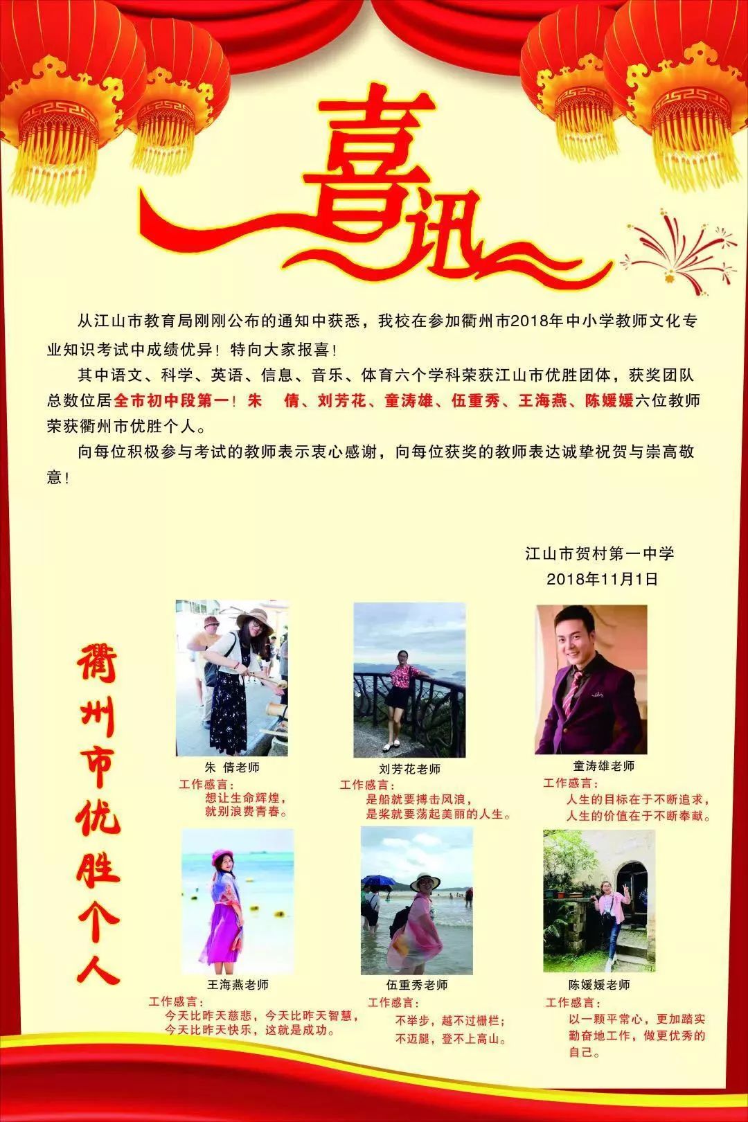 在2018年衢州市中小学教师文化专业知识考试中,我校六位教师获奖。