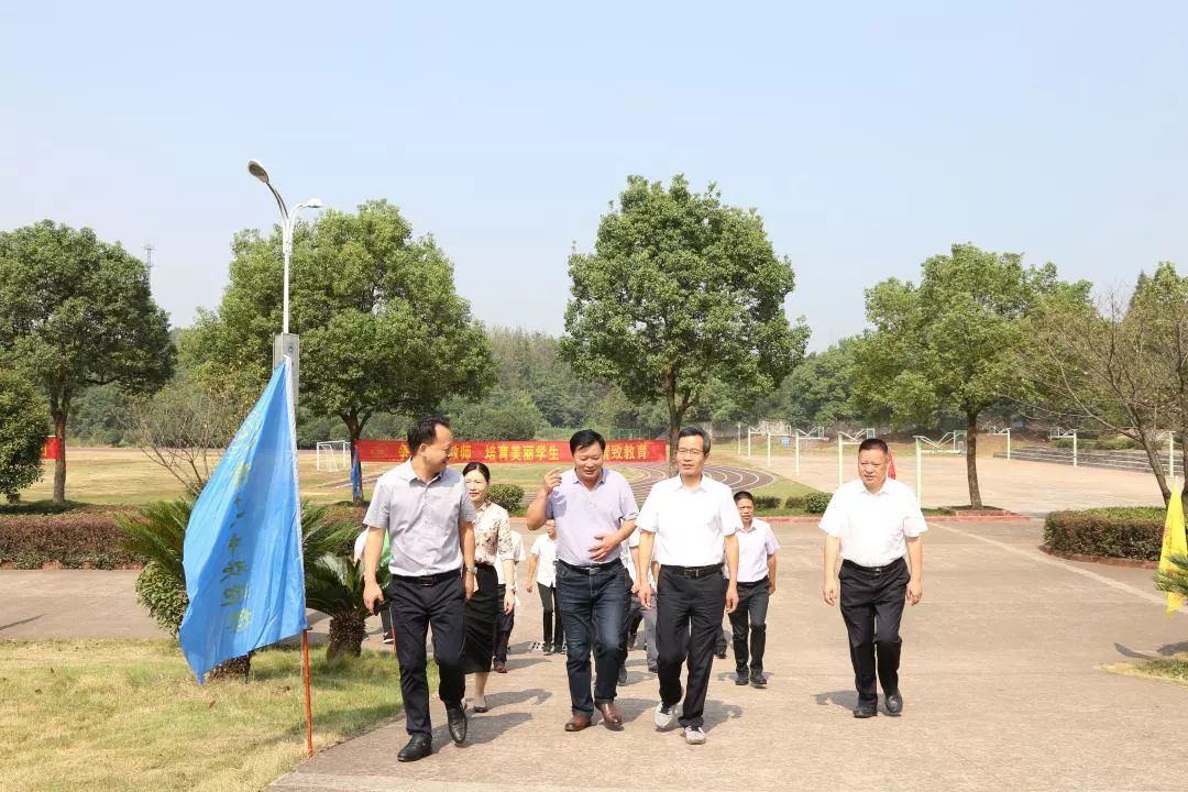 市委常委、贺村镇党委书记李纯浩,教育局党委书记、局长毛香水,局党委委员、副局长段齐敏及办公室、计财科等科室领导来校开展工作调研。