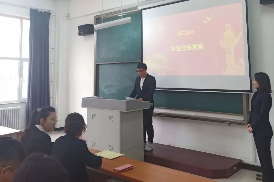 由学生代表邢文杰同学发言。邢文杰同学汇报了自己在党校学习的心得体会及学习十九大精神的深刻领悟,并端正入党动机、坚定党的信仰,牢记使命,不忘初心,真正做到在思想中向党组织靠拢,不辜负党的信任。