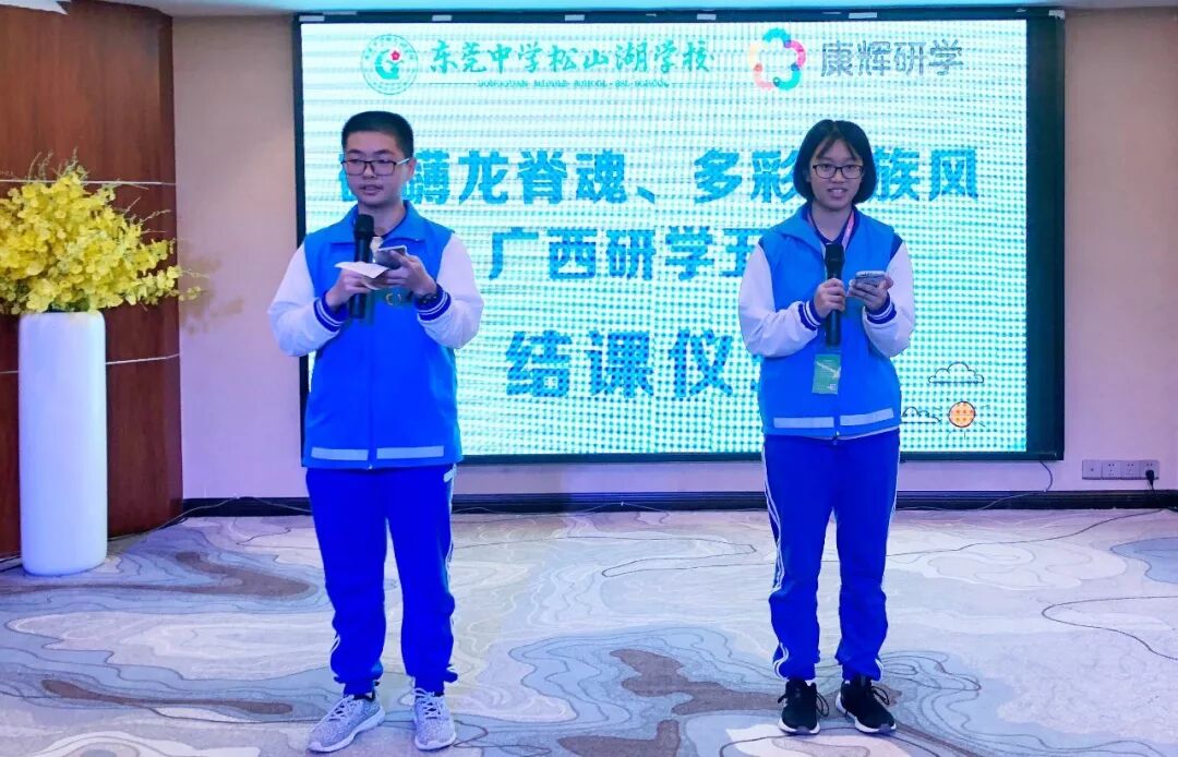 广西研学5天结课仪式正式开始,由两位同学进行主持,每个小组协作配合编排节目。