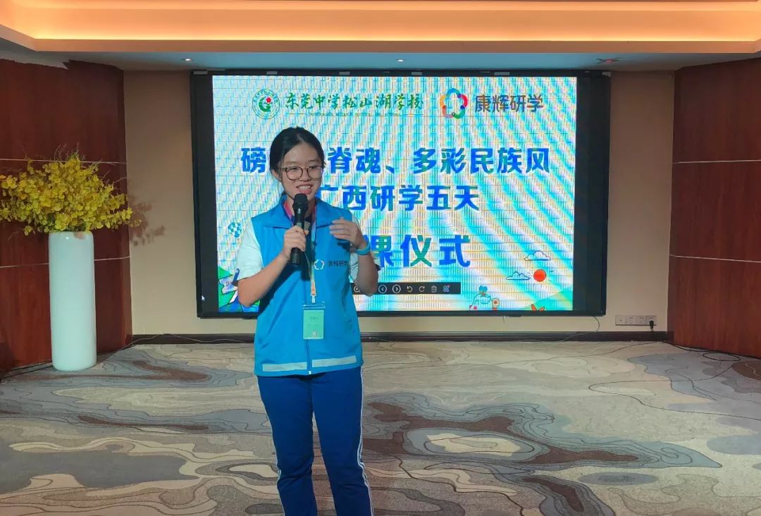 刘老师在结课仪式上为此次广西研学旅行进行总结发言。