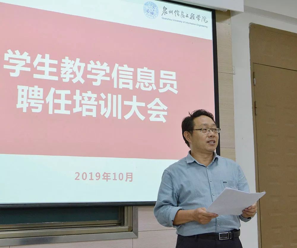 最后,苏彦琴对《泉州信息工程学院学生教学信息员工作实施办法》进行解读。她强调了教学信息员工作的重要性。教学信息员是维护学校教学秩序稳定,为广大同学代言的重要工作,是学校与学生、教师与学生之间联系的桥梁和纽带,教学信息员工作是促使学校不断改进教学,提升教学质量的重要环节。同时,苏彦琴对教学信息员的工作要求进行培训,详解工作内容、方法和反映渠道。