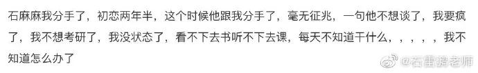 姚大哥的captain喵:这个事情得这么看,还好分的早,还有时间调整,考试前一天分手连调整的时间都没有