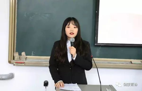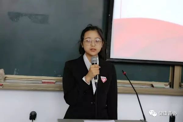 青协大二优秀干部米晓亚上台讲话,讲述了她在青协的收获与成长,诉说她对青协的热爱。