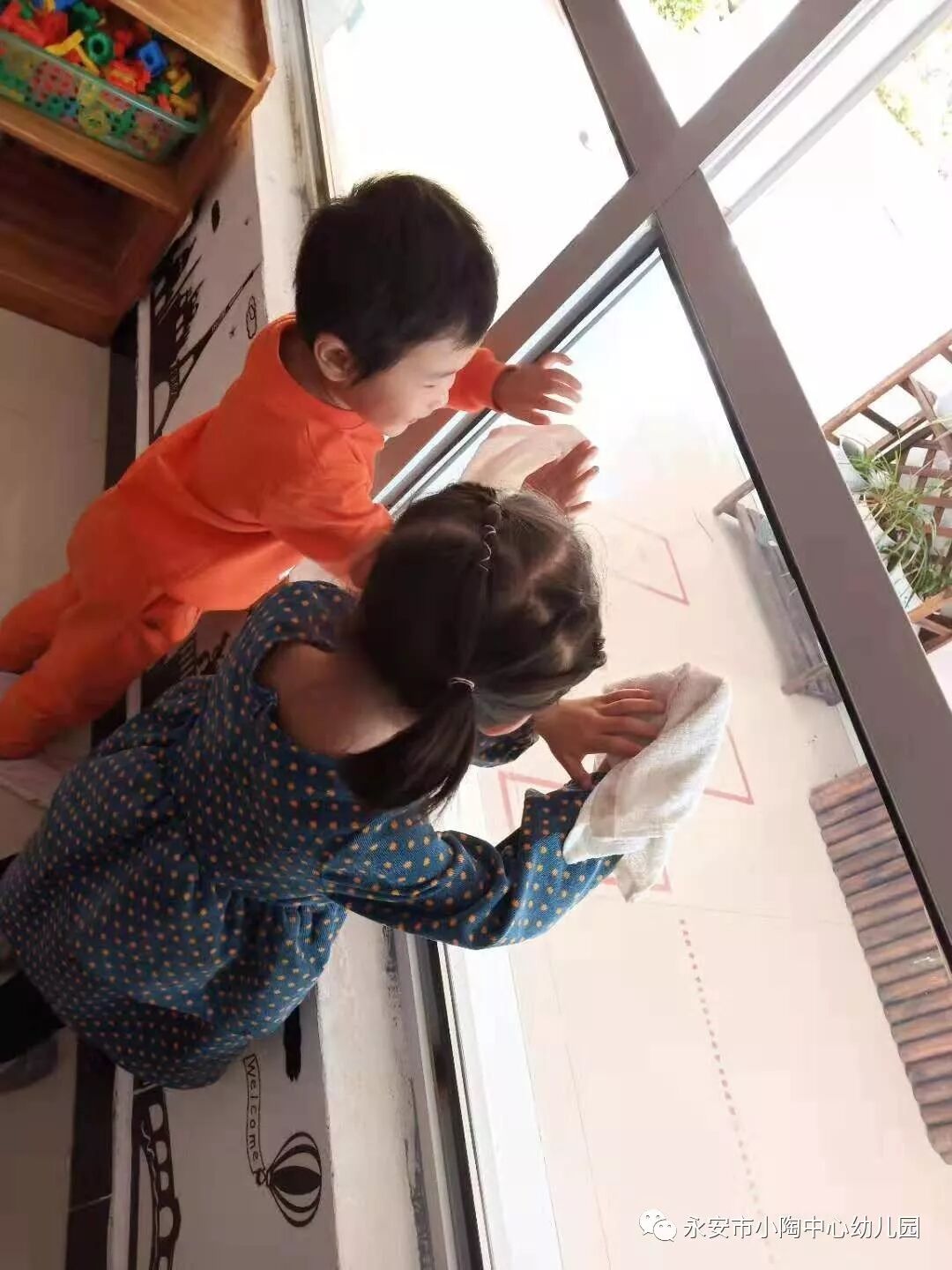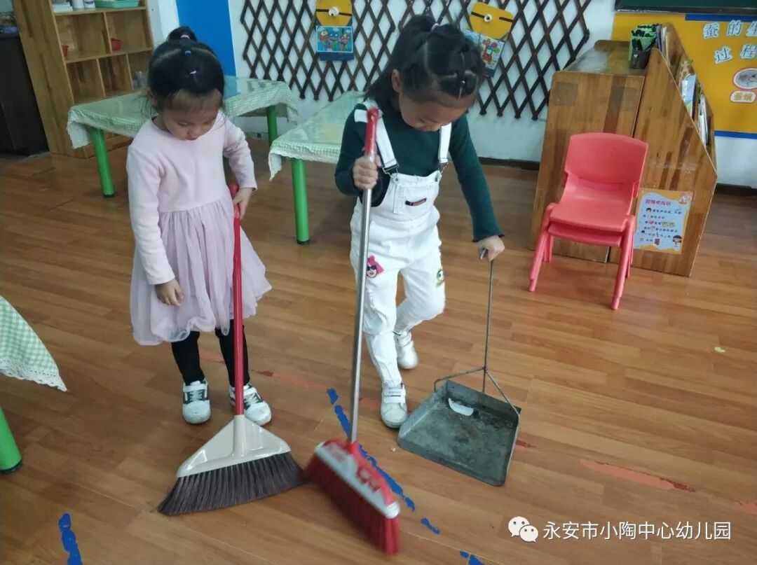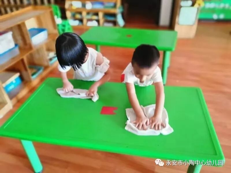 为了让幼儿从小养成爱清洁、讲卫生的好习惯,小朋友在老师的带领下,拿起抹布、笤帚、拖把,清洁了自己的桌椅和幼儿园的角角落落,让孩子们从实践中真切地感受并理解“爱卫”的意义。
