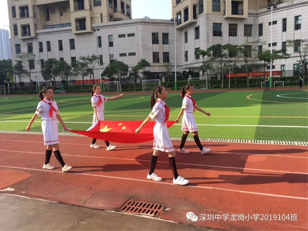 早上,一年(4)班全体同学怀着激动的心情聚集在教室里,整装待发迎接运动会开幕式的开始,随着升旗仪式、校领导致开幕词、运动员代表宣誓、裁判员代表宣誓,最后领导宣布2019年深圳中学龙岗小学体育节暨学生田径运动会开幕!入场式开始!