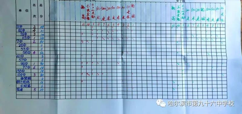 在刚刚落幕的道里区中小学生田径运动会上,哈96中学参赛运动员以90分的成绩荣获道里区初中组团体第一名的好成绩(51中、60中、76中、113中是体育基点校,单独排序)。