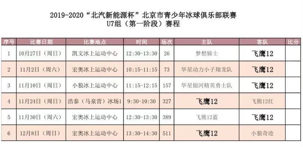 由北京体育局主办,北京冰球协会承办的2019-2020北京市青少年冰球俱乐部联赛将于10月26日拉开序幕。本届联赛共设U7选拔、U8竞技、U8选拔A、U8选拔B、U9选拔、U10竞技、U10选拔A、U10选拔B、U12竞技、U14竞技、U18竞技共11个组别,本届联赛共有202支球队参赛。俱乐部预祝飞鹰队各组别取得好成绩!