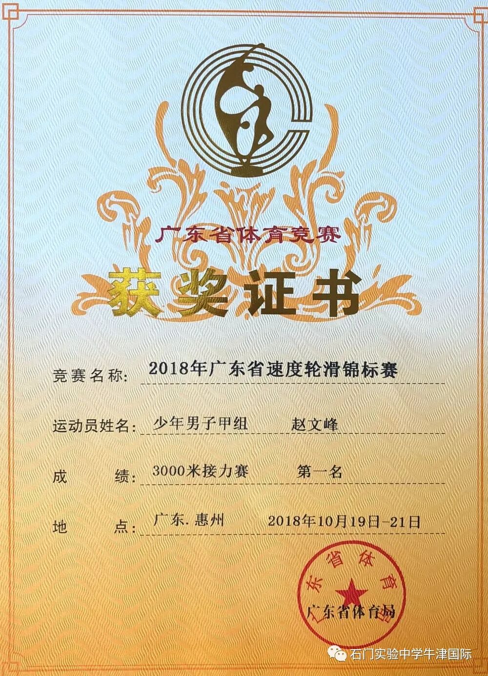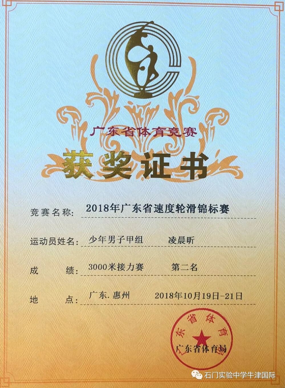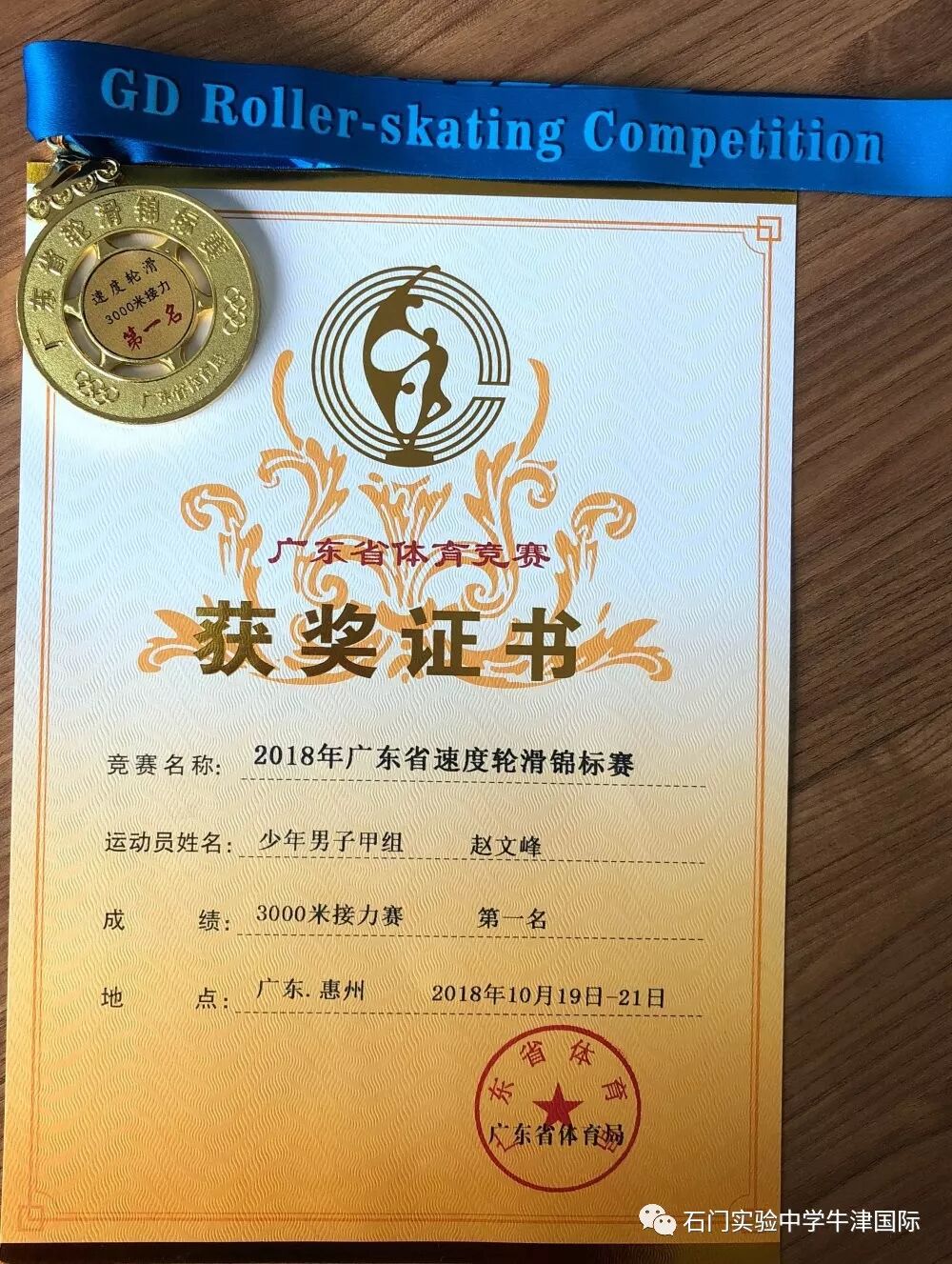 牛津国际学子代表石门实验中学参加了2018年广东省速度轮滑锦标赛,从800多名选手中脱颖而出,斩获傲人佳绩。