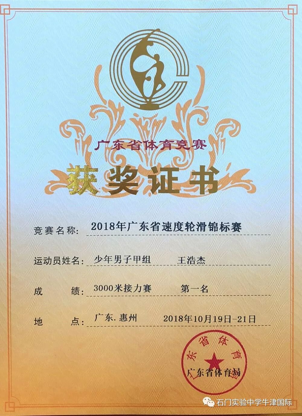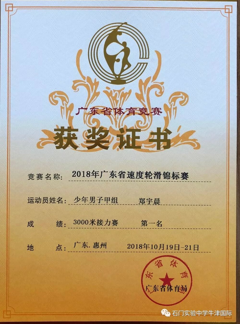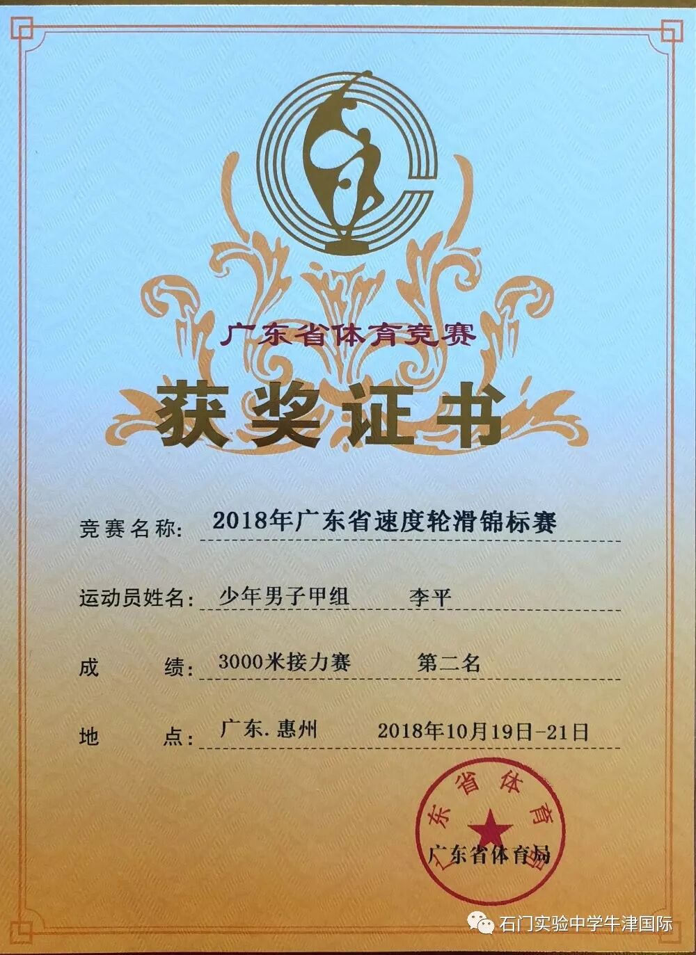 牛津国际学子代表石门实验中学参加了2018年广东省速度轮滑锦标赛,从800多名选手中脱颖而出,斩获傲人佳绩。