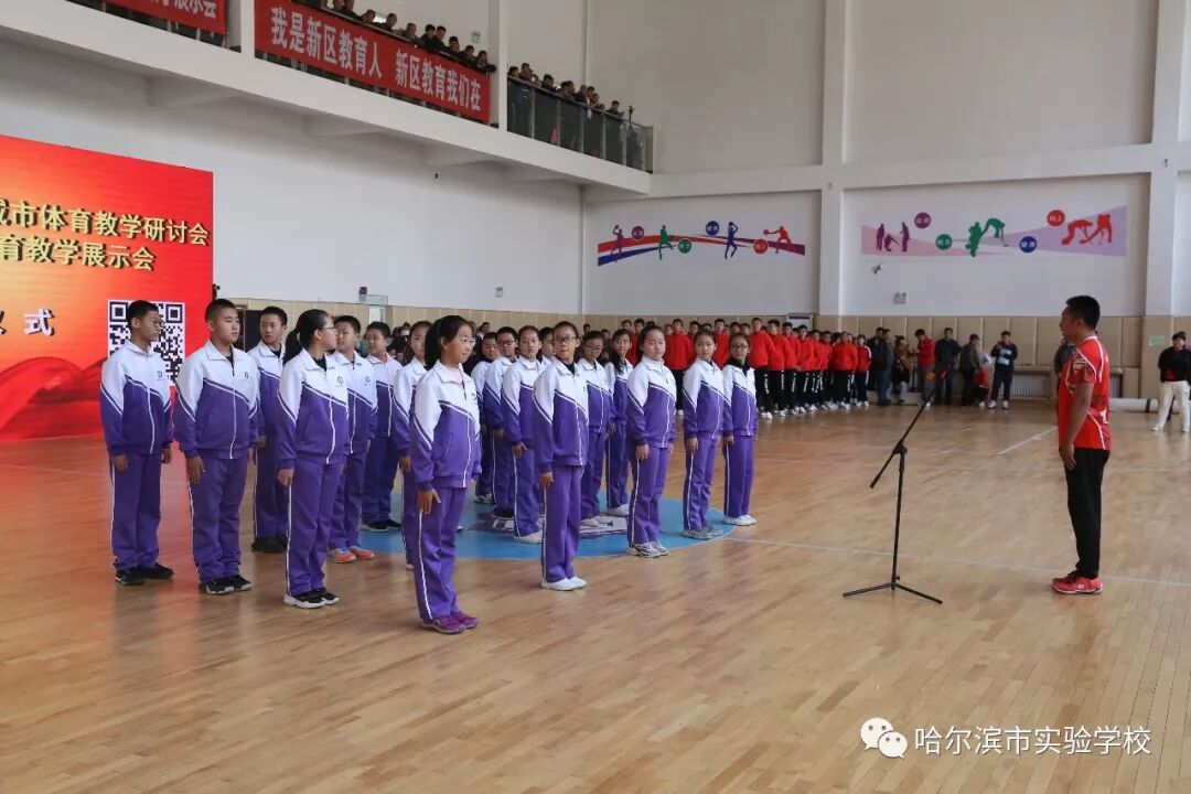 乾坤万里蔚蓝天,十月金秋紫气翩。10月24日至25日,由哈尔滨市教育局、哈尔滨市教育研究院主办,松北区教育局、松北区教师进修学校承办,哈尔滨市实验学校、哈尔滨市新区师范附属小学协办的第十四届黑龙江省“四城市”(哈尔滨、齐齐哈尔、大庆、牡丹江)体育教学研讨会暨哈尔滨市学校体育教学成果展示会在哈尔滨市实验学校隆重召开。